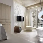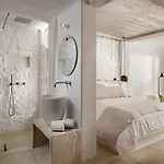 Kove Mykonos - A Myconian Collection Hotel propose des chambres équipées d'un coin salon, ainsi que de la climatisation pour votre confort. En plus d'une machine à espresso, elles disposent également du Wi-Fi gratuit et d'une tablette en chambre pour vous divertir. Dotées d'une baignoire spa, d'une toilette séparée et d'une douche, les salles de bains disposent également d'un sèche-cheveux et d'un bonnet de douche. Des chambres insonorisées avec vue sur la plage sont également disponibles.